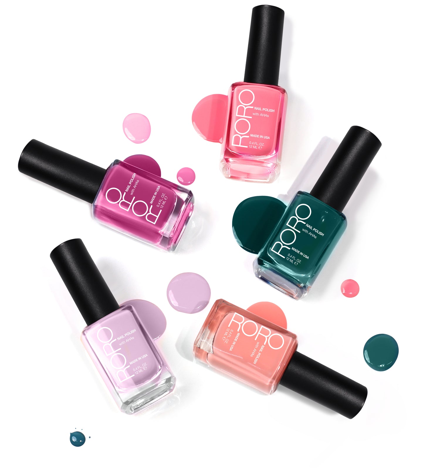 RORO was created to exceed the expectations of what an affordable nail color can be. Our professional grade polish is formulated to condition nails and deliver beautiful high impact color. Rejuvenating, AHA infused formula works to enhance moisturization, resurface, and brighten dull or damaged nails.